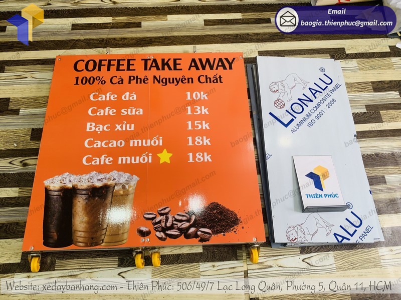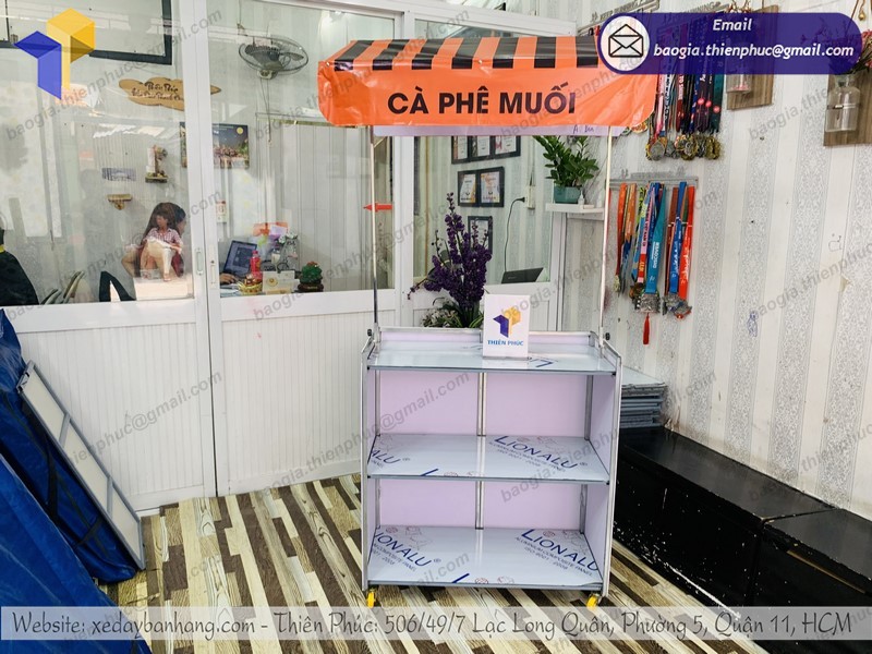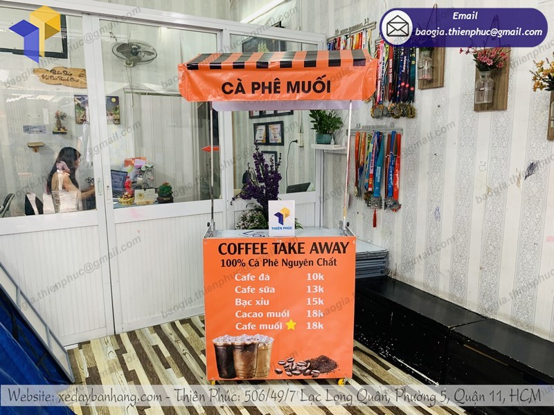 Ngoài việc phân phối các thiết bị bếp công nghiệp, Thiên Phúc còn sản xuất xe đẩy bán cà phê. Đặc biệt hơn, xưởng chế tạo cùng đội ngũ KTV sẽ gia công theo đúng yêu cầu khách hàng. Nếu đã có bản vẽ hoặc ý tưởng về mẫu xe mong muốn, hãy đến với Thiên Phúc. Công ty đảm bảo sẽ thúc đẩy quá trình và giao hàng trong thời gian ngắn nhất. Chất liệu, hình thức, trang trí,… đều dựa theo sở thích của khách hàng.