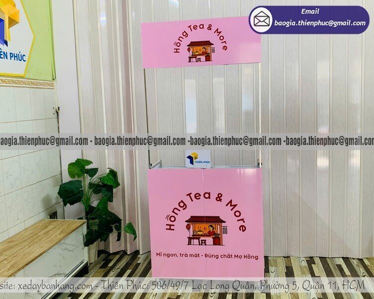 - Marketing 360 độ cực kỳ thu hút: Mỗi chiếc xe đẩy kinh doanh di động được in ấn Decal chất lượng cao, phủ màng bóng chống trầy. Hình ảnh sản phẩm sống động trên xe đóng vai trò như một biển quảng cáo di động, thu hút khách hàng từ xa.