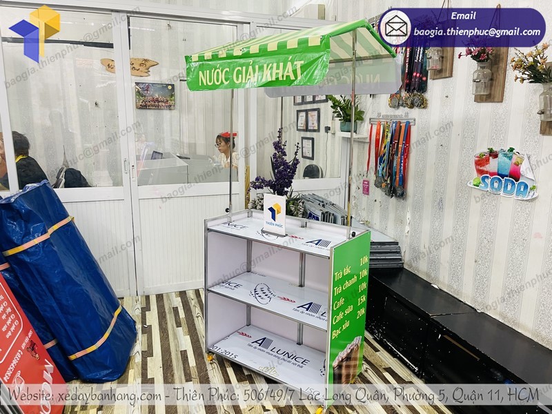- Xe đẩy gọn nhẹ, trưng bày và đựng nhiều đồ đạc buôn bán tiện lợi, không cồng kềnh, dễ dàng thao tác sử dụng.