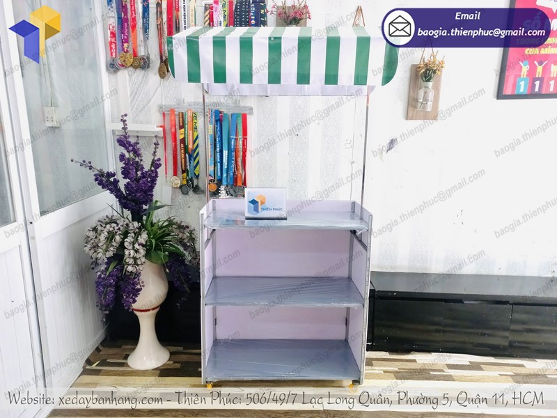 - Xe đẩy gọn nhẹ, trưng bày và đựng nhiều đồ đạc buôn bán tiện lợi, không cồng kềnh, dễ dàng thao tác sử dụng.