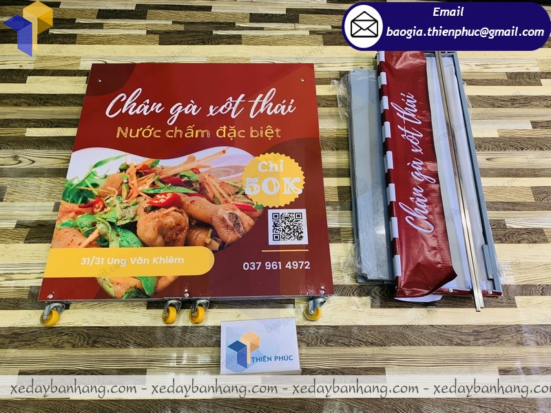 Thiên Phúc đang cung cấp những mẫu xe đẩy bán hàng lưu động, quầy bán hàng gấp gọn, xe gỗ bán hàng lưu động, satndee quảng cáo, dù quảng cáo, khay đựng thức ăn, xe lắp ráp bán hàng gấp gọn, booth sampling,.... Với những mẫu sản phẩm đa dạng phong phú, giá cả hợp lý.