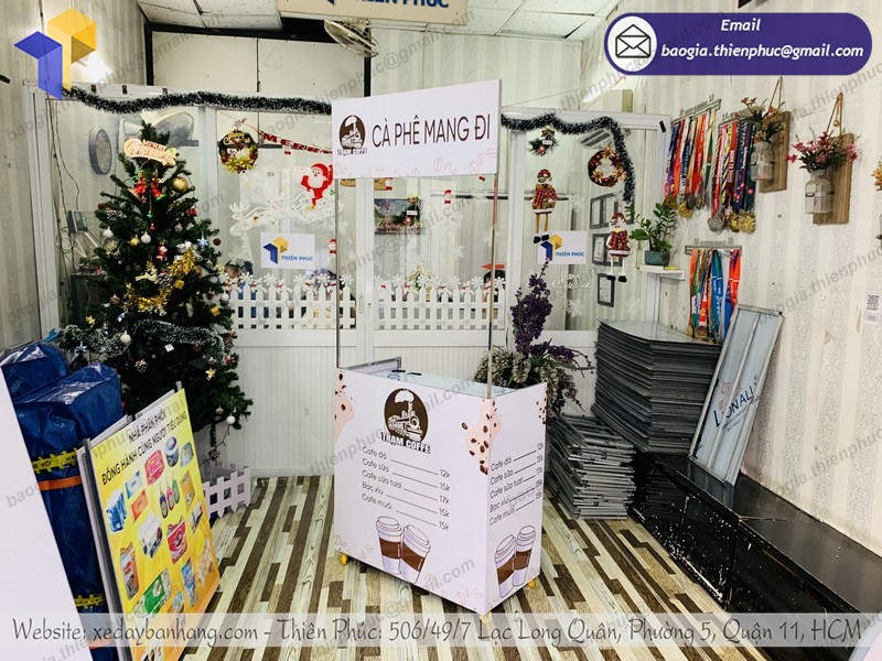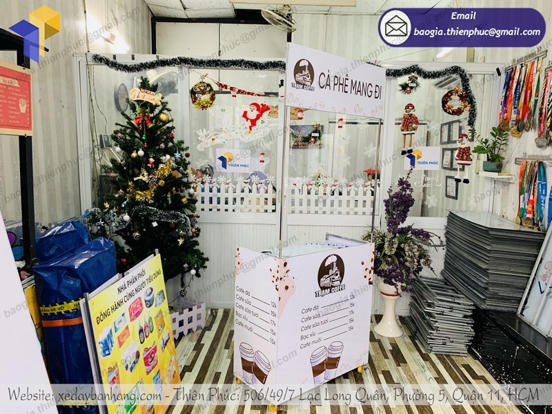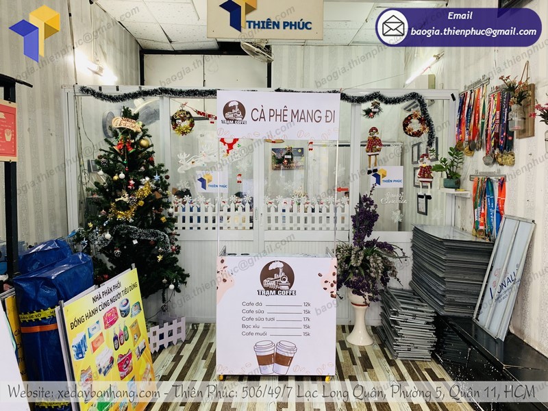 Thương hiệu xe cà phê được nhắc đến nhiều nhất dạo gần đây chính là Thiên Phúc. Với vốn kinh nghiệm nhiều năm, công ty chắc chắn sẽ mang lại những trải nghiệm đáng giá. Mặt hàng được bày bán tại showroom, website đều do chính xưởng của công ty sản xuất. Tất cả yếu tố đã quy tụ lại và tạo nên sự uy tín, chất lượng trong từng đơn hàng.
