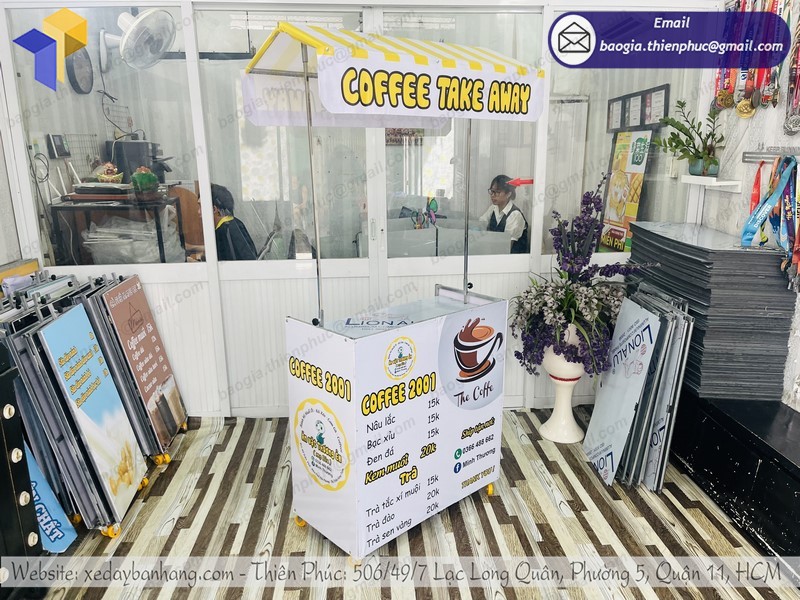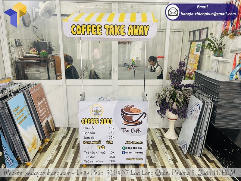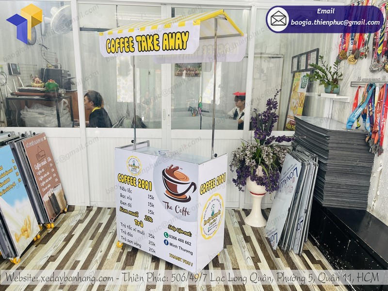Công ty Thiên Phúc là một trong những địa chỉ chuyên sản xuất và phân phối xe bán cà phê lưu động đẹp, giá rẻ nhất mà bạn không thể bỏ qua. Với hơn 10 năm kinh nghiệm trong lĩnh vực gia công xe đẩy bán hàng, trong đó có tủ cà phê. Các sản phẩm gia công phân phối tại Thiên Phúc luôn được người tiêu dùng đánh giá cao: Chất lượng sản phẩm tốt – Mẫu mã đẹp độc lạ – Giá thành rẻ.