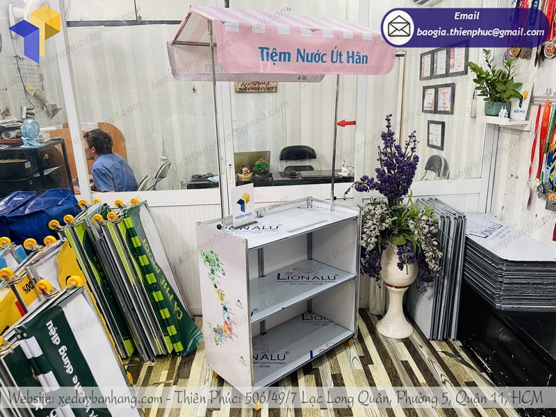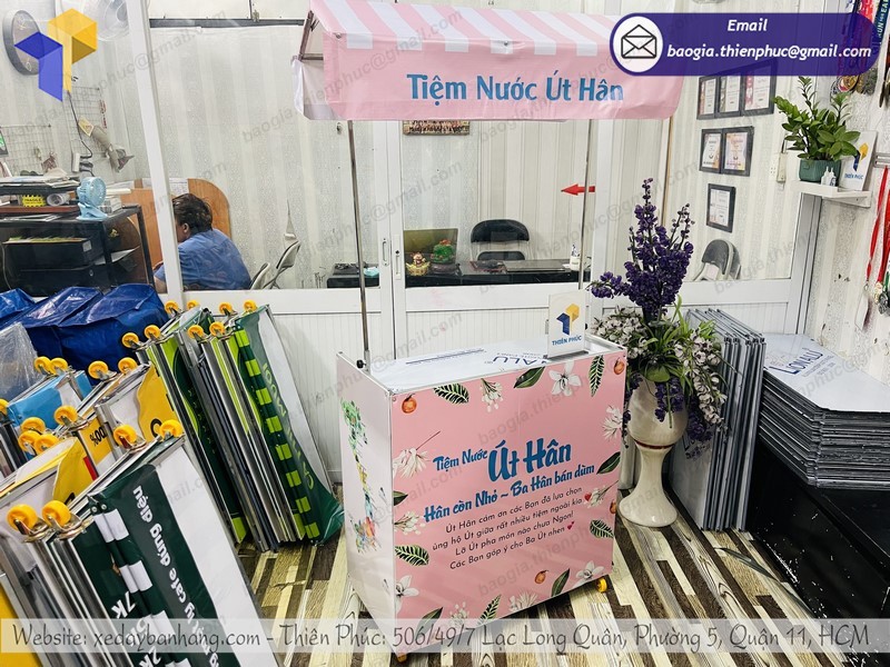 Một trong những địa chỉ bạn có thể hoàn toàn yên tâm khi mua sắm xe đẩy bán cafe đó chính là Thiên Phúc. Tại Thiên Phúc cung cấp xe bán cafe, trà sữa,.. di động bằng chất liệu inox 304 cao cấp với đề can nổi bật, đẹp mắt để thu hút khách hàng ghé quầy.