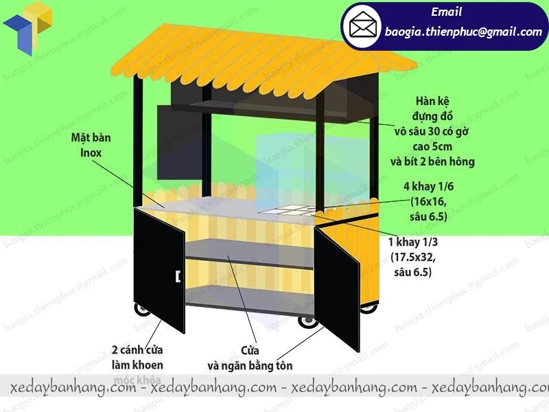 Được thiết kế không khác gì những chiếc xe bán hàng lưu động, những chiếc xe bán thức ăn nhanh giá rẻ được Thiên Phúc biến tấu, pha trộn màu sắc mới lạ, thiết kế kiểu dáng cũng như những tiện ích cần thiết nhằm phục vụ tối đa cho nhu cầu người sử dụng đang được nhiều khách hàng tin chọn sử dụng.