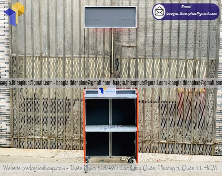 Mua kệ bán đồ ăn bán rong di động lắp ráp trên đường phố - Xưởng sản xuất & Công Ty Thiên Phúc là xưởng chuyên nhận gia công - sản xuất - thiết kế & in ấn logo thương hiệu - nhãn hiệu - menu sản phẩm theo yêu cầu khách hàng với hơn 10 năm kinh nghiệm, cung cấp nhiều mẫu tủ/quầy/xe bán hàng gấp gọn lưu động, chỉ cần 700.000đ/xe trở lên với chất lượng ốp bạt,... chưa kèm theo chi phí khác như menu, đèn led, ô dù, kệ xếp,... Hỗ trợ xuất hóa đơn VAT. Đặt hàng từ 10 kệ trở trở lên giảm mỗi kệ 50.000đ. Giao hàng nhanh trên toàn quốc. Thiết kế logo hoàn toàn miễn phí.