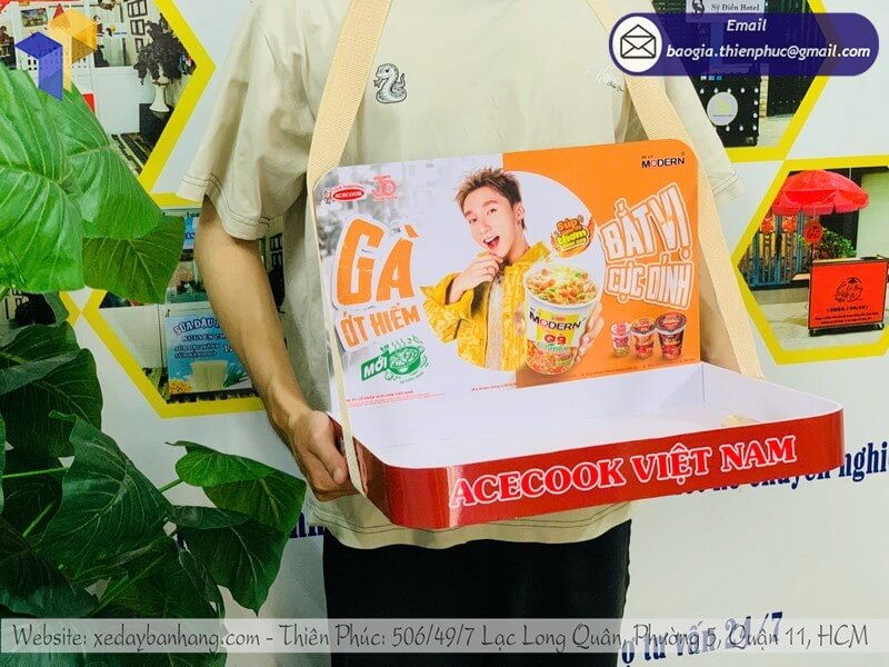 Tên sản phẩm: Mua mẫu khay PG sampling có dây đeo in logo giá sỉ nhãn hàng thương hiệu ACECOOK VIỆT NAM mì ly Modern