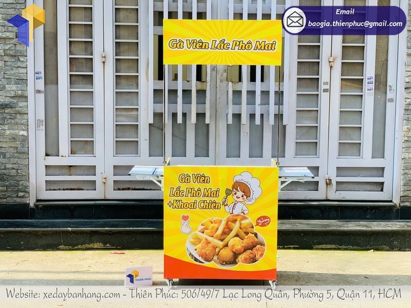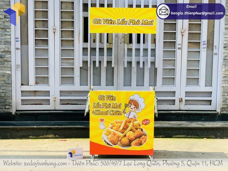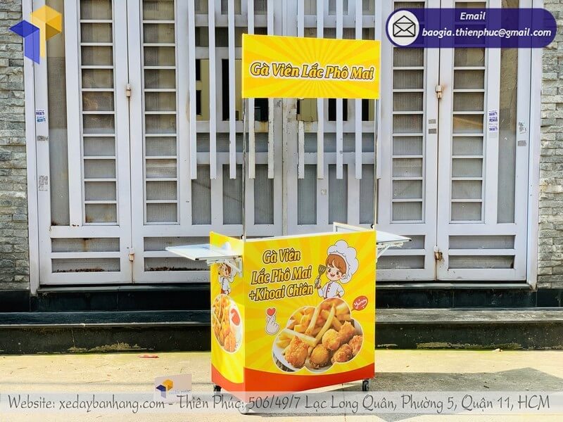 Tên sản phẩm: Mua quầy bán đồ ăn vặt xếp gọn dạo với logo GÀ VIÊN LẮC PHÔ MAI