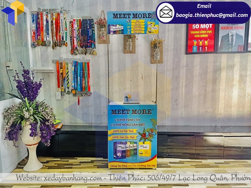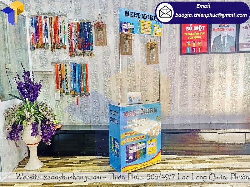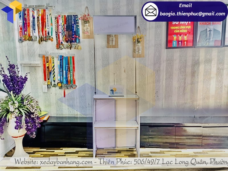 Công ty Thiên Phúc chuyên sản xuất booth bán hàng lưu động, booth sapling, quầy quảng cáo, quầy kệ trưng bày, xe bán hàng lưu động,....theo yêu cầu. Liên hệ ngay với chúng tôi qua số hotline/zalo 0903.897.980 để được tư vấn sớm nhất và nhận báo giá quầy kệ quảng cáo mini tốt nhất trên thị trường.