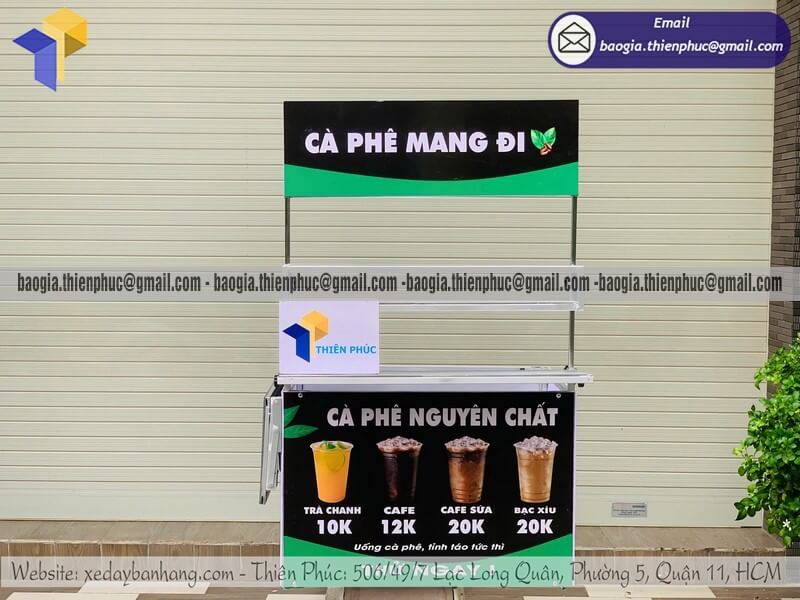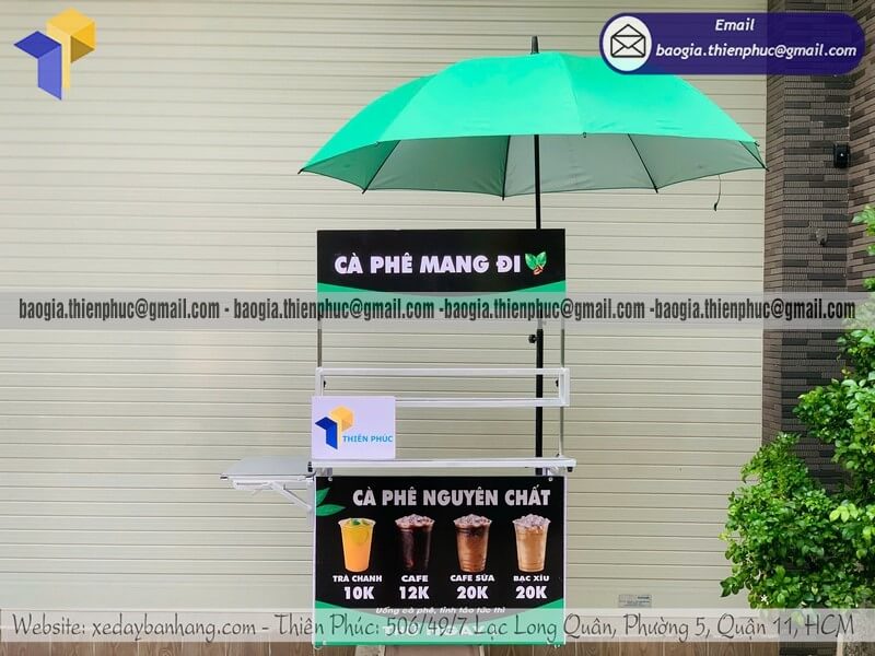 Mua thùng bán cafe take away bán rong trên xe máy rẻ - Xưởng Thiên Phúc là Công Ty & Xưởng sản xuất chuyên nhận sản xuất và gia công - cung cấp nhiều mẫu thùng bán cafe lưu động gắn xe máy. Với giá rẻ tận gốc - Giá cạnh tranh nhất thị trường dao động rẻ nhất chỉ từ 880.000đ/thùng cho size nhỏ và 980.000đ/thùng cho size lớn hơn ( chưa bao gồm dù che: 150.000đ/cây và bệ xếp: 100.000đ/cái ). Đặt đơn hàng số lượng lớn sẽ được chiết khấu giảm giá ưu đãi. Hỗ trợ xuất hóa đơn đỏ VAT cho Doanh Nghiệp hoặc Công Ty. Liên hệ Thiên Phúc xưởng sản xuất để được tư vấn chi tiết kích thước và thiết kế mẫu mã, báo giá nhanh chóng trong 5 phút. Giao hàng trên toàn quốc.
