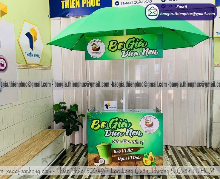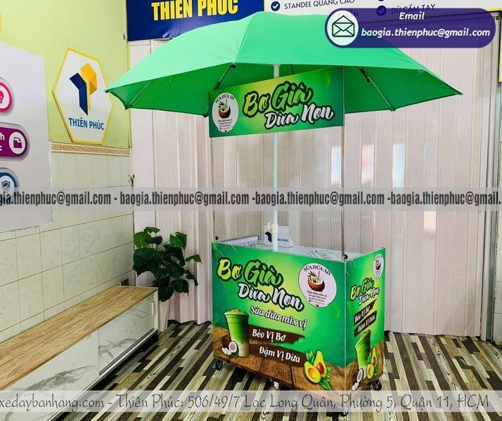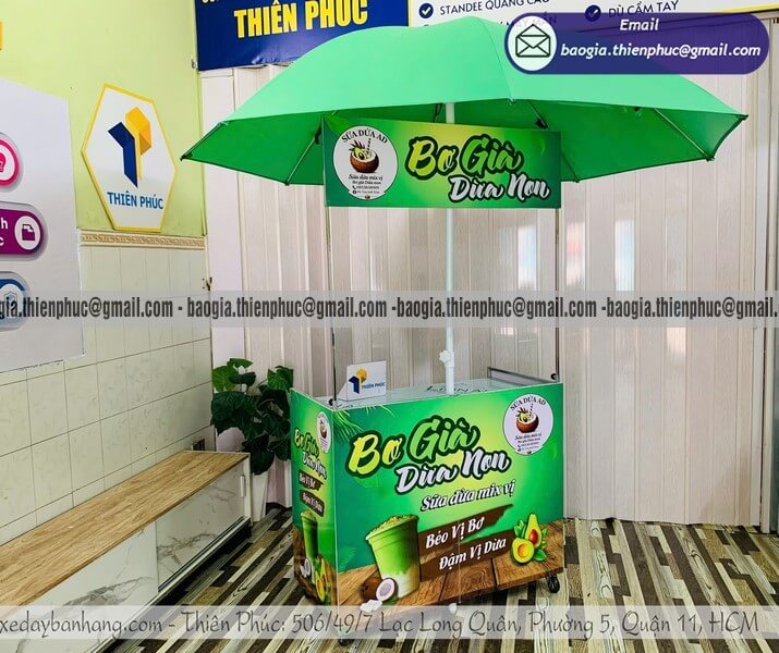 Nhờ tính năng gắn thêm dù che, chiếc xe bán đồ uống vỉa hè này trở thành một "gian hàng di động" hoàn hảo tại các hội chợ, sự kiện ngoài trời, hoặc đơn giản là góc phố thân quen mỗi sáng.