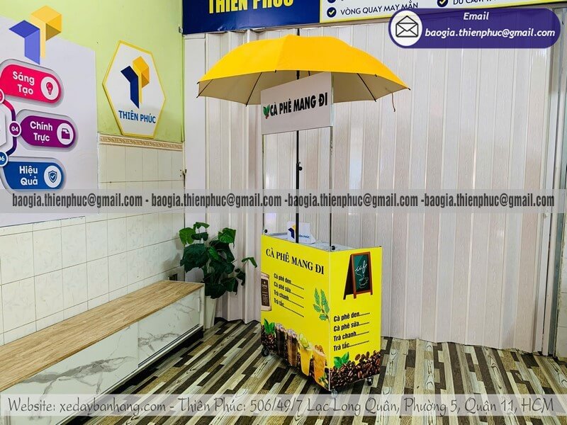 Thích hợp: cho các bạn trẻ kinh doanh ít vốn mở bán trà sữa, cà phê lưu động, hoặc các đại lý muốn mở rộng kênh bán hàng lưu động xe bán cafe gắn dù