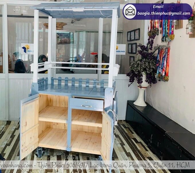 Một chiếc xe gỗ bán trà sữa tốt luôn được thiết kế khoa học: khay đựng nguyên liệu, khu vực để máy dập nắp, ngăn đựng đồ khô, mặt bàn pha chế rộng rãi. Nhờ vậy, bạn thao tác nhanh hơn, phục vụ khách hiệu quả hơn, tạo sự chuyên nghiệp trong từng chi tiết.