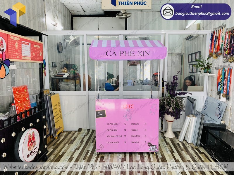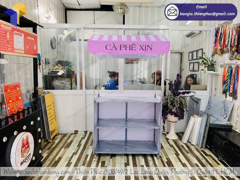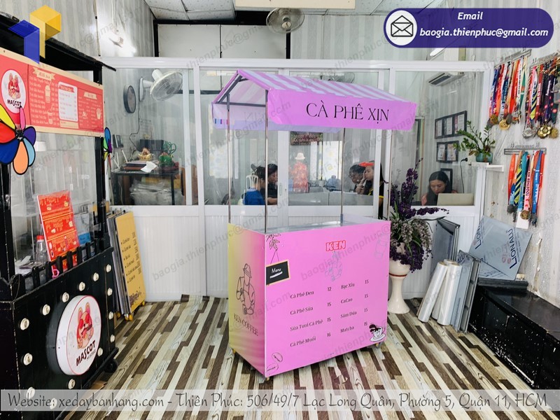 Bên cạnh đó, với đội ngũ gia công giàu kinh nghiệm, Thiên Phúc còn hỗ trợ tư vấn và thiết kế xe trà sữa theo yêu cầu, mang đậm dấu ấn riêng của chủ xe đẩy với mức giá cạnh tranh nhất thị trường hiện nay. Bạn chỉ cần bỏ ra từ 1 triệu đồng là đã có thể sở hữu ngay một chiếc tủ bán cà phê chất lượng với thiết kế độc đáo từ Thiên Phúc.