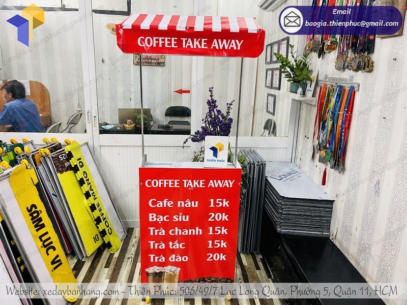 Nếu bạn đang có nhu cầu mua những chiếc xe cafe take away thì Thiên Phúc chính địa chỉ tin cậy giúp bạn sở hữu những sản phẩm chất lượng tốt, mẫu mã đẹp, giá thành hợp lý nhất.