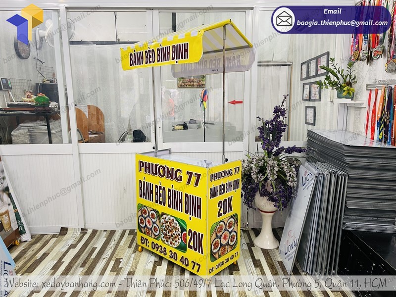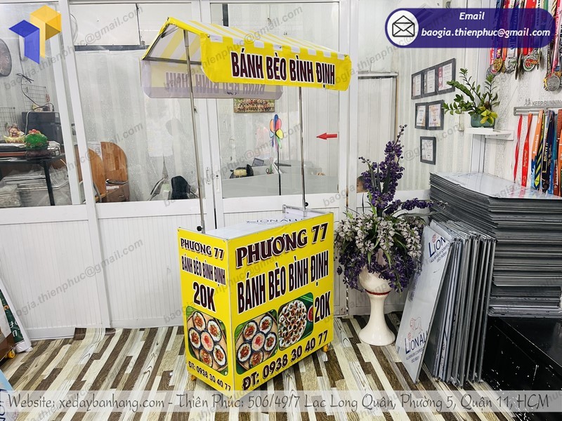 Vậy, bạn nên hạn chế mua lại những chiếc xe đã sử dụng vì những bất tiện của nó. Xưởng sản xuất Thiên Phú chuyên thiết kế và gia công xe bán bánh bèo lắp ráp theo yêu cầu của khách hàng. Với sự uy tín và đặt khách hàng lên hàng đầu, chúng tôi cam kết đem đến những sản phẩm có chất lượng tốt nhất với giá cả phải chăng để góp phần vào chiến lược kinh doanh mô hình take away này của bạn một cách hiệu quả nhất.