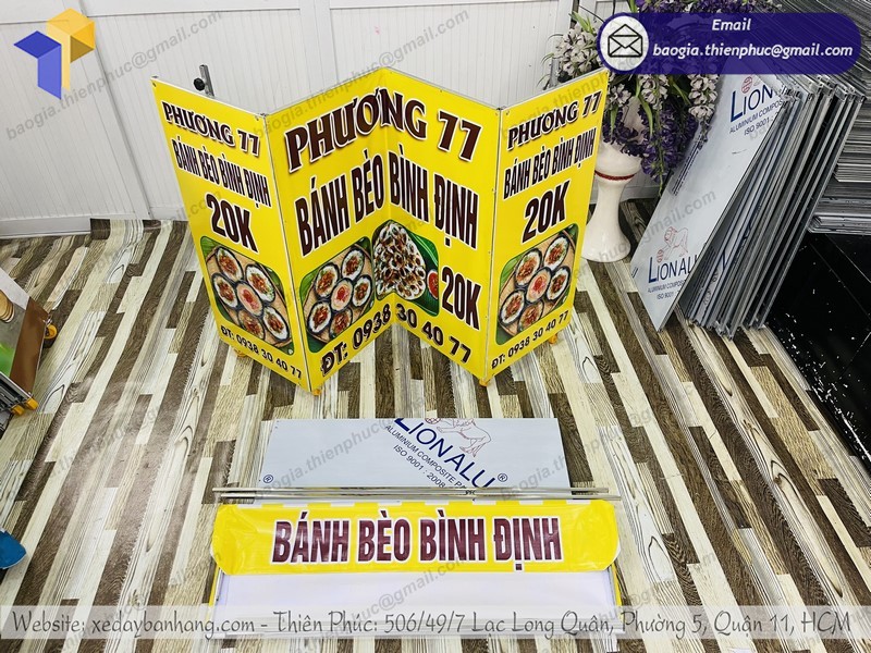 Với những chiếc xe bán bánh bèo lắp ráp thì trên bảng hiệu luôn in thông tin quán cũ, nếu muốn mua xe cũ thì đồng nghĩa với việc bạn sẽ hạn chế lai việc thiết kế và trang trí lại chiếc xe của mình. Bảng hiệu là phần khách nhìn thấy đầu tiên, việc để lại ấn tượng cho khách rất quan trọng. Đây là một trong những yếu tố quan trọng để quyết định khách hàng có trải nghiệm sản phẩm bên mình hay không.