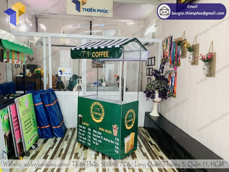 Thiên Phúc một trong những đơn vị sản xuất, cung ứng các mẫu xe bán cà phê lắp ráp hàng đầu hiện nay. Đầy đủ các mẫu mã như: xe đẩy bán hàng rong bánh mì, đồ uống, nước ép, đồ chiên….