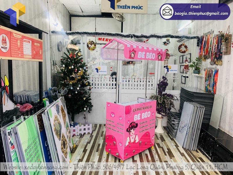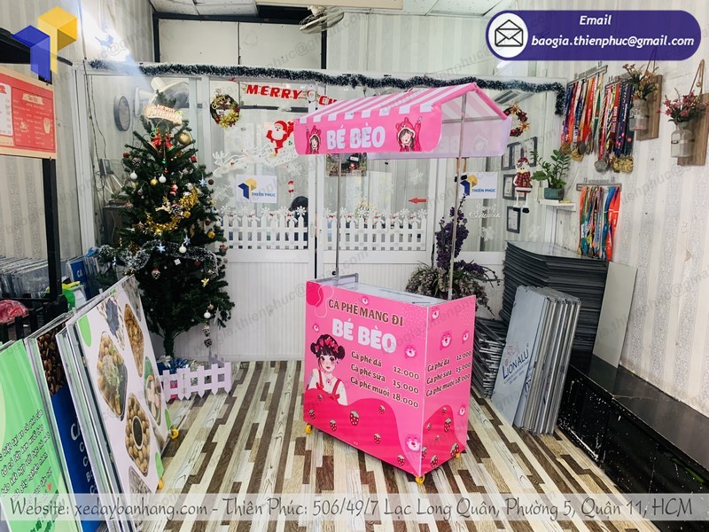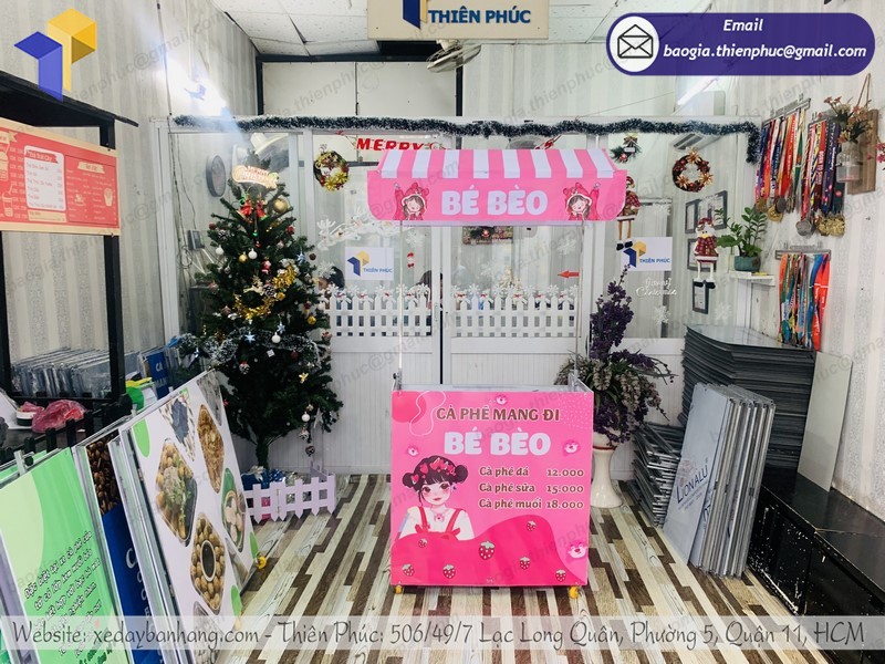 Hoạt động trong lĩnh vực gia công xe đẩy bán hàng nhiều năm, Thiên Phúc tự hào là đơn vị chuyên bán, sản xuất các loại xe bán hàng lưu động như xe bán cà phê, xe bán trà sữa, xe bán xiên que ăn vặt, xe bán hủ tiếu, xe đẩy bán thức ăn nhanh… Trong đó, xe bán café take away của chúng tôi là một trong những sản phẩm được khách hàng rất yêu thích và là mô hình kinh doanh được nhiều bạn trẻ trên khắp cả nước tìm đến. Sở dĩ như vậy vì chúng tôi luôn cập nhật những xu hướng mới, đầu tư hệ thống máy móc hiện đại, công nghệ in tiên tiến chất lượng và đặc biệt đội ngũ nhân viên có nhiều năm kinh nghiệm làm việc và tận tâm với công việc. Vì thế, các sản phẩm tạo ra luôn được khách hàng đánh giá cao. Bên canh đó, Thiên Phúv có đội ngũ hỗ trợ khách hàng thiết kế, tư vấn chuyên nghiệp sẵn sàng đồng hành với quý khách hàng khi cần hỗ trợ về quầy xe bán cà phê.