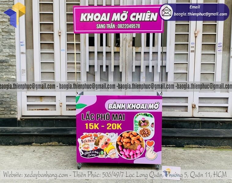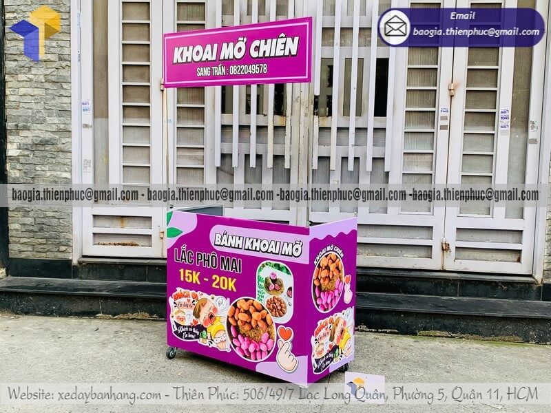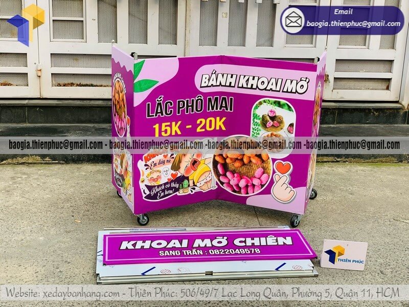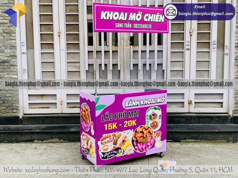 Tên sản phẩm: Nhận gia công tủ bán bánh dạo gấp gọn đường phố giá sỉ với logo in KHOAI MỠ CHIÊN LẮC PHÔ MAI