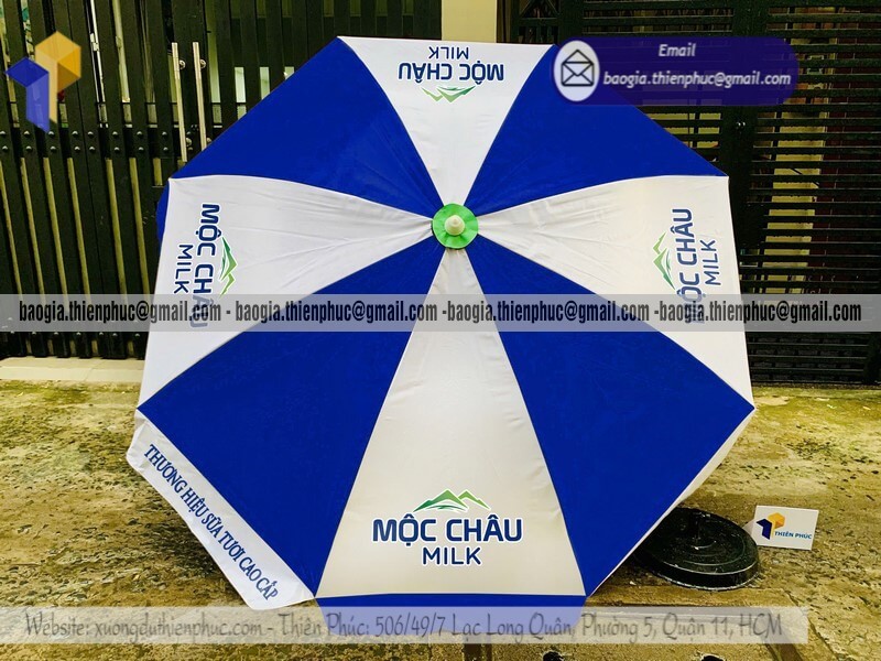 Tên sản phẩm: Nhận in dù quảng cáo ngoài trời che nắng cho event với nhãn hiệu logo MỘC CHÂU MILK