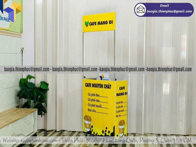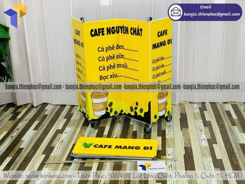 Nếu bạn đang tìm nơi Nhận làm kệ bán cafe dạo mini gấp gọn lưu động vỉa hè, hãy liên hệ xưởng sản xuất Thiên Phúc để được tư vấn mẫu phù hợp và nhận mức giá tốt nhất.