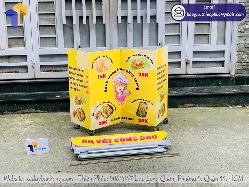 Báo giá kệ bán đồ ăn di động xếp gọn trên lề đường rẻ - Thiên Phúc là xưởng sản xuất trên 10 năm kinh nghiệm trong việc gia công - thiết kế nhiều mẫu kệ - quầy - tủ bán đồ ăn di động xếp gọn bán trên vỉa hè, lề đường,... Với giá rẻ nhất chỉ từ 700.000đ/kệ. Thiết kế logo nhãn hiệu - thương hiệu miễn phí. Đặt từ 10 kệ trở lên, giảm hơn 50.000đ/kệ. Giao hàng nhanh trên toàn quốc.