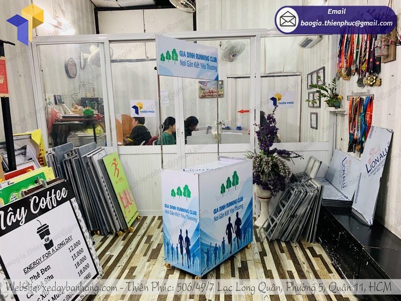 Nhận thiết kế gia công quầy tiếp nước di động ship toàn quốc
