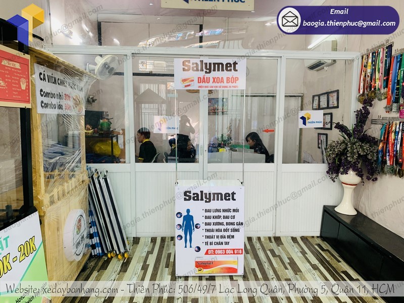 Thiên Phúc chuyên cung cấp và nhận thiết kế, sản xuất các vật phẩm quảng cáo standee, quầy kệ trưng bày sản phẩm,… Trong đó, booth quảng cáo chính là thế mạnh vượt trội nhất của Thiên Phúc.