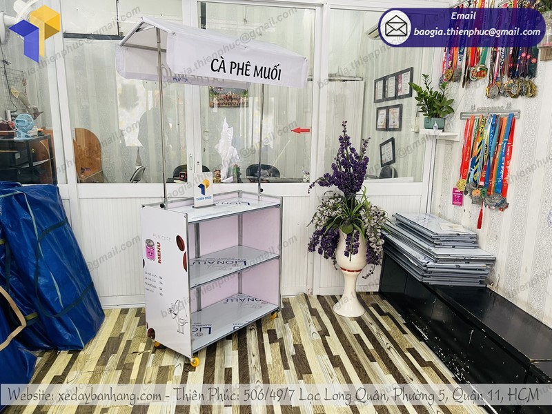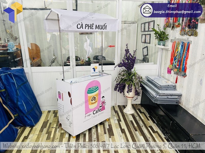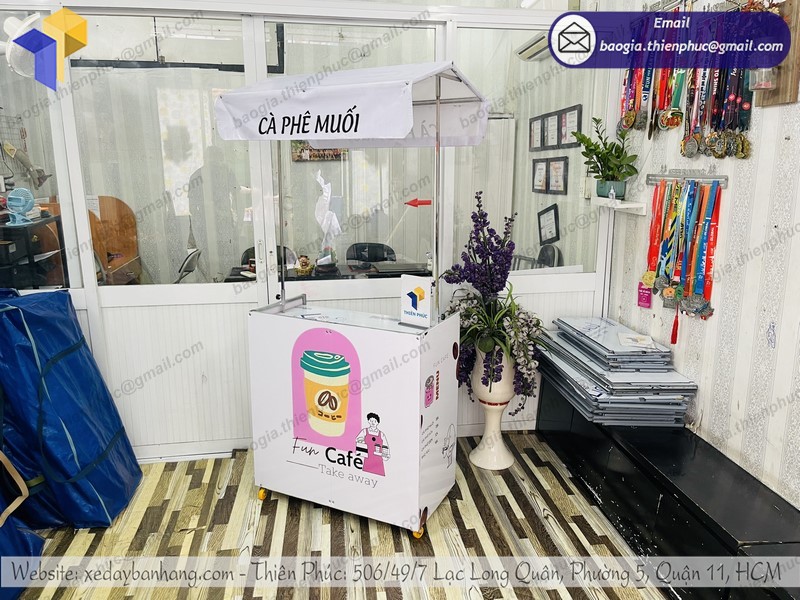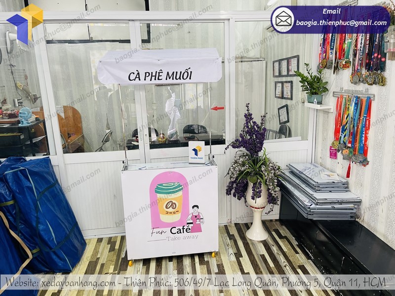 Thiên Phúc là xưởng sản xuất quầy bán café take away được đông đảo khách hàng chọn lựa tin dùng. Từ những người kinh doanh nhỏ lẻ, bán hàng đường phố tới quán cơm, bún phở, nhà hàng, khách sạn, trường học, bệnh viện, quân đội, bếp ăn khu công nghiệp, …..Khách hàng tìm tới Thiên Phúc không chỉ sản phẩm xe đẩy bán cafe vỉa hè giá rẻ mà mẫu mã thiết kế đẹp, khoa học.