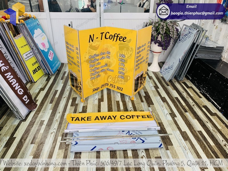 Cùng với đó cần đầu tư biển hiệu lớn ấn tượng cho xe bán café vỉa hè để dễ dàng thu hút và gây ấn tượng với các thực khách. Ngoài ra các bạn có thể đăng lý các gian hàng trên app đặt đồ ăn để có thể kết hợp bán online.