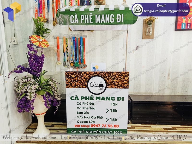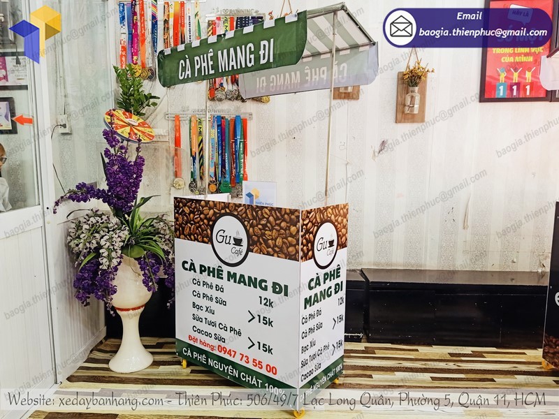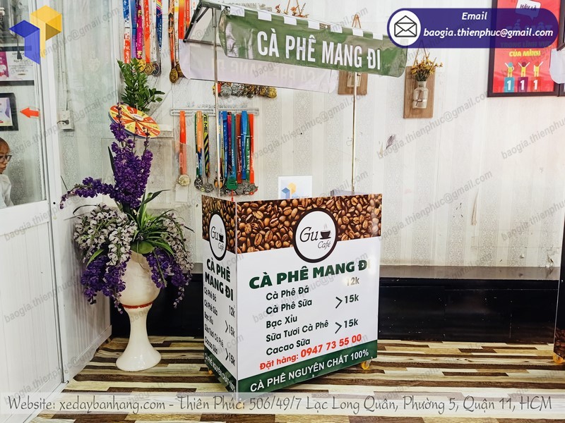 Liên hệ mua xe đẩy bán cà phê vỉa hè tại công ty Thiên Phúc qua hotline 0903.897.980