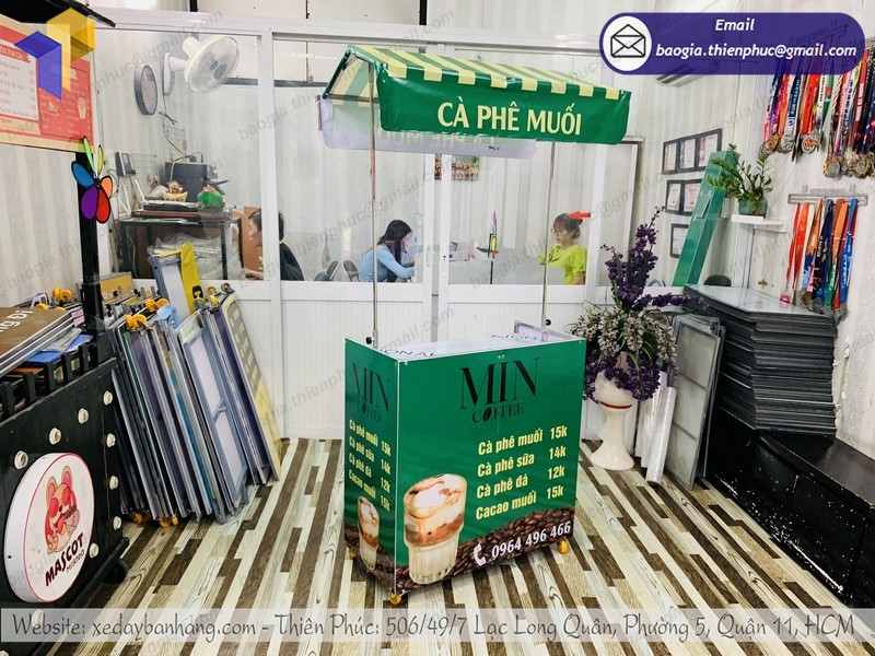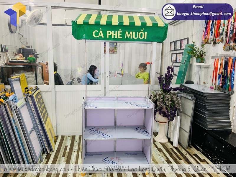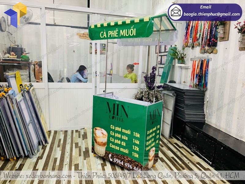 Đặt mua xe cafe take away tại Thiên Phúc bạn sẽ nhận về mình nhiều ưu đãi cực Shock. Giá bán của Thiên Phúc dao động ở mức 1 – 10 triệu đồng tùy thiết kế. Phương tiện BH trọn bộ trong thời gian 1 năm, hỗ trợ thay thế linh kiện chính hãng. Ngoài ra, đơn vị còn nhận đặt thiết kế cũng như sản xuất các mẫu theo yêu cầu riêng của KH với giá phải chăng.