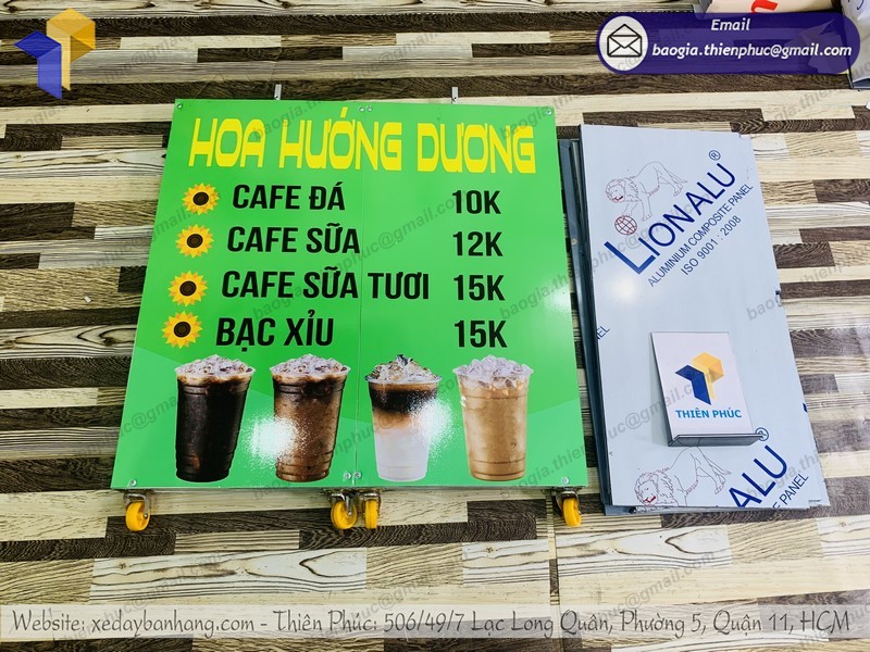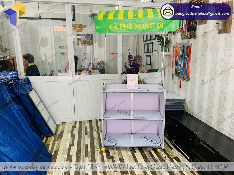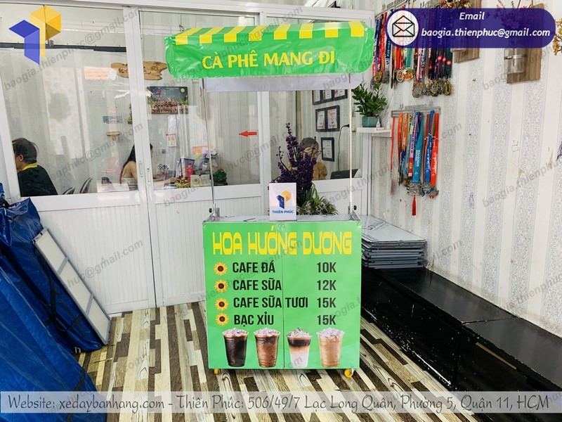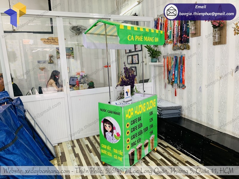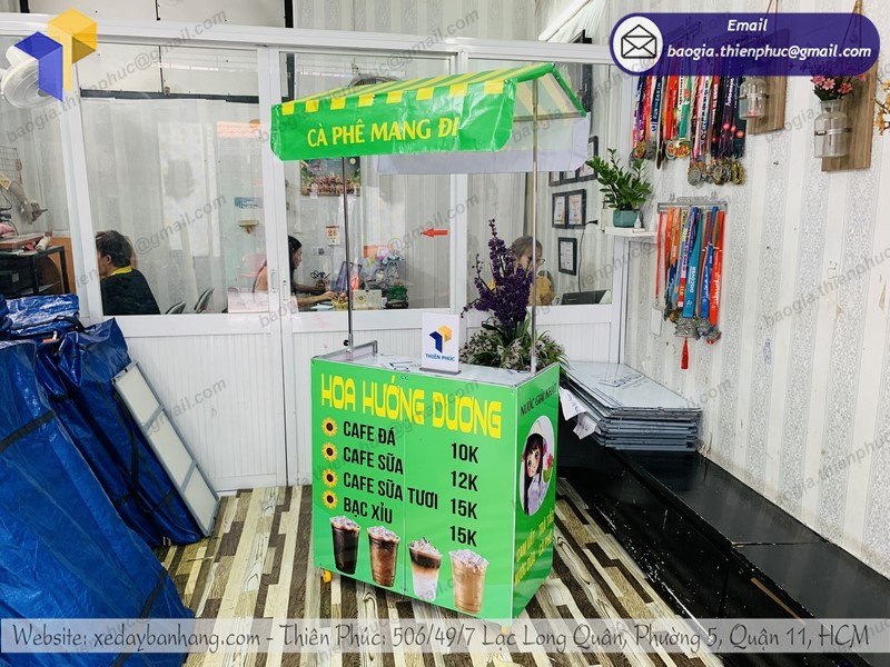 Tại Thiên Phúc, xe cafe lưu động có hơn 300 mẫu với nhiều kích thước và thiết kế khác nhau. Khi bạn mua sản phẩm tại Thiên Phúc với nhiều chất liệu khác nhau như gỗ; sắt; inox; alu.. với kích thước 80cm; 1m; 1m2; 1m4; 1m5; 1m6; 1m8; 2m, 2m2 ..Tất cả đều được Thiên Phúc gia công tỉ mỉ. Đặc biệt khi mua hàng tại Thiên Phúc, bạn được hướng dẫn và tư vấn tận tình nhằm giúp bạn tiết kiệm chi phí và phù hợp với mục đích kinh doanh mà lựa chọn loại xe thích hợp.