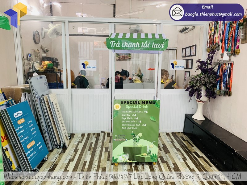 Để được sở hữu xe xếp gọn bán trà chanh chất lượng, giá rẻ, hãy liên hệ ngay với Công ty Thiên Phúc: