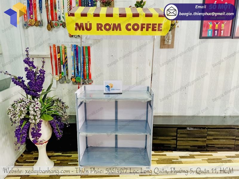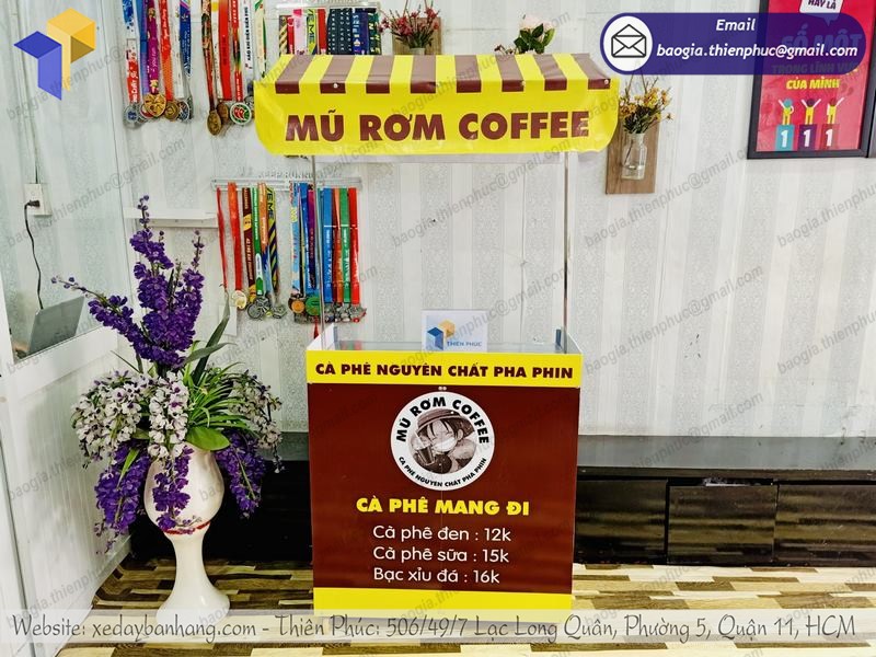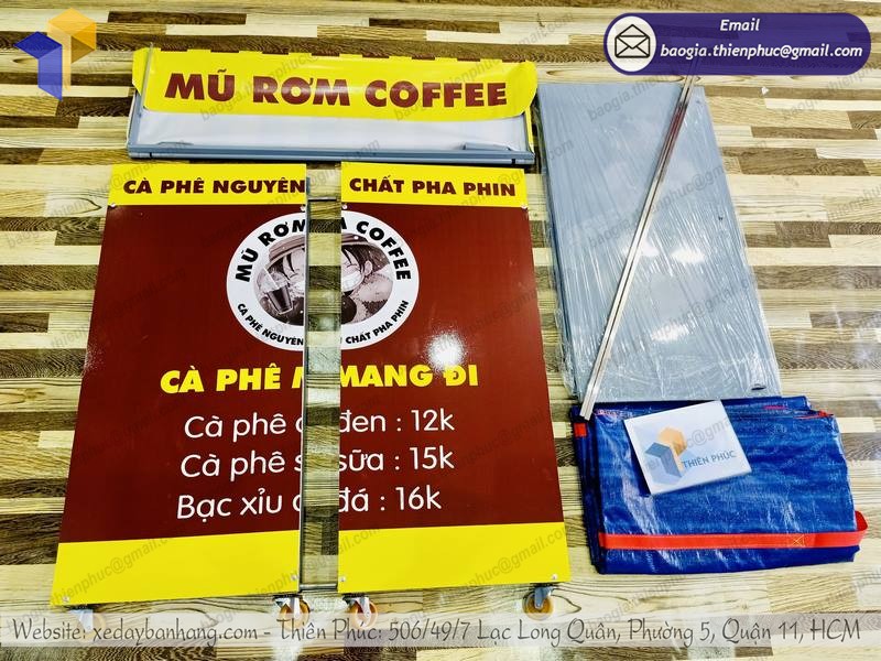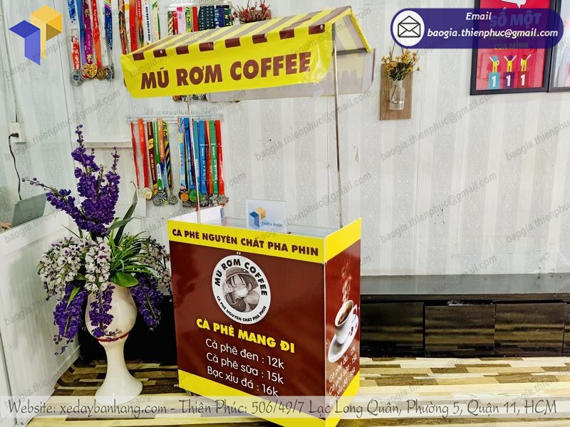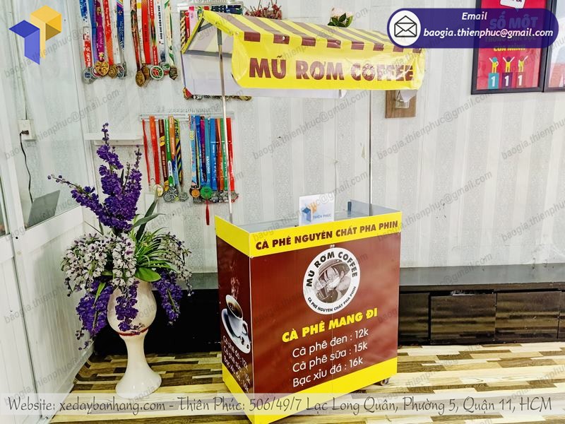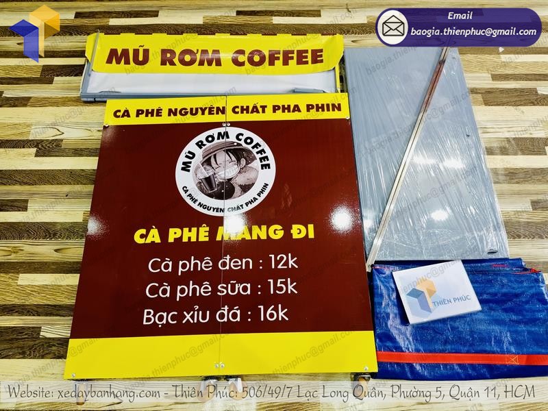 xe cafe take away gấp gọn là sản phẩm hữu hiệu để quảng cáo tại điểm bán vỉa hè nên các nhãn hiệu mới ra đời và các nhãn hiệu mong muốn đẩy nhanh doanh số, tăng thị phần đều nên dùng xe lắp ráp bán hàng Thiên Phúc