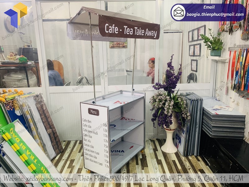Nếu bạn đang cần tìm một nơi chuyên thi công xe gấp gọn bán cafe thì Thiên Phúc xin trân hân hạnh được phục vụ. Xưởng sản xuất booth chúng tôi với nhiều năm kinh nghiệm trong việc gia công các xe lắp ráp, quầy kệ, booth bán hàng di động, có hỗ trợ thiết kế, in decal theo yêu cầu chắc chắn sẽ khiến bạn hài lòng khi lựa chọn đây làm nơi đặt đóng booth bán hàng mà bạn yêu thích.