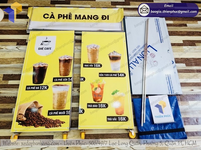 - Hình ảnh bố trí trên quầy bán cà phê nguyên chất: Đây là điểm quan trọng nhất đối với những loại xe lắp ráp của bạn. Hình ảnh nên là hình thật do bạn tự chụp sẽ tạo hiệu ứng sẽ được tốt hơn. Một số trường hợp chúng ta sẽ thiết kế và sử dụng hình ảnh minh họa trên mạng cho đẹp.