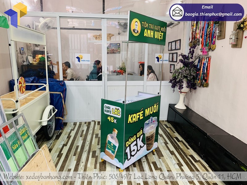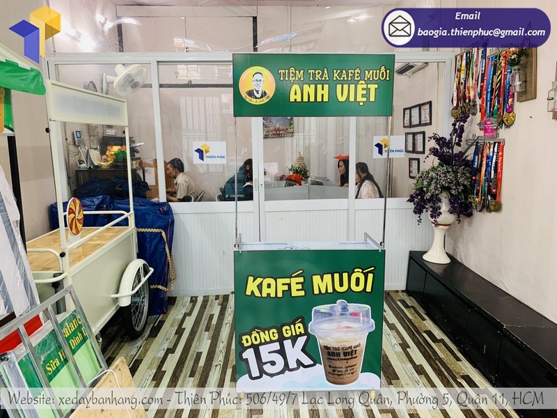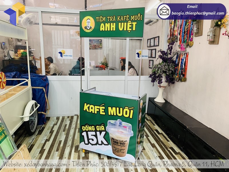 Mua xe đẩy bán café giá rẻ tại Thiên Phúc để được hỗ trợ thiết kế Decal độc quyền miễn phí. Liên hệ số HOTLINE: 0903 897 980