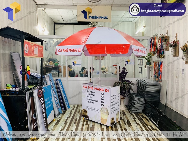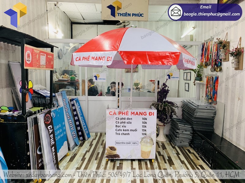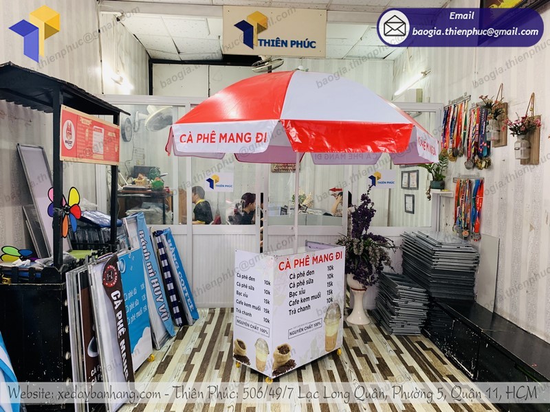 Bạn đang muốn khởi nghiệp với xe cà phê lắp ráp có gắn dù vỉa hè lưu động. Tuy nhiên, bạn đang đắn đo vì chưa biết địa chỉ mua hàng uy tín chất lượng. Hãy đến với Công ty Thiên Phúc để chọn mua cho mình sản phẩm phù hợp và ưng ý nhất.