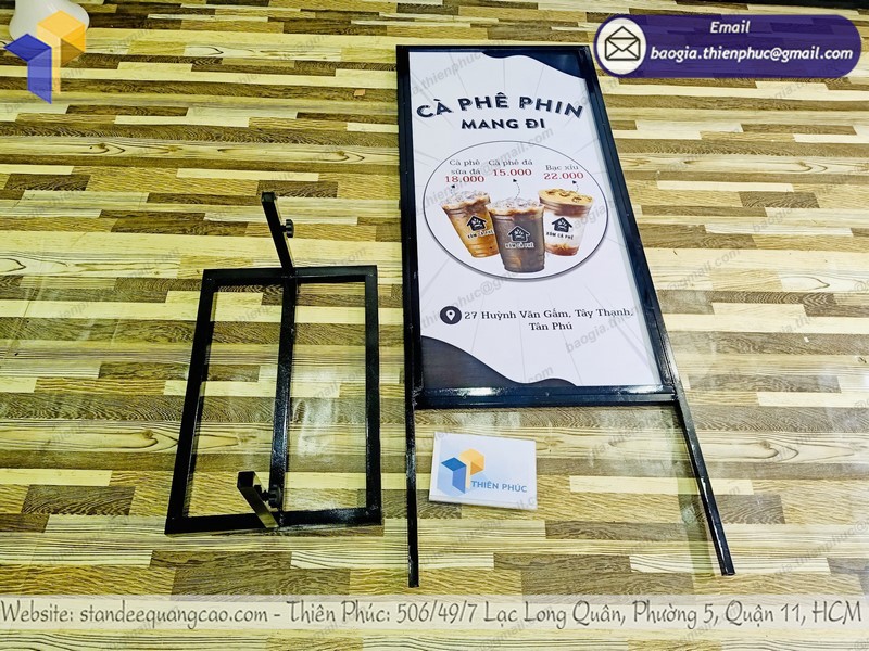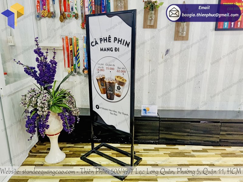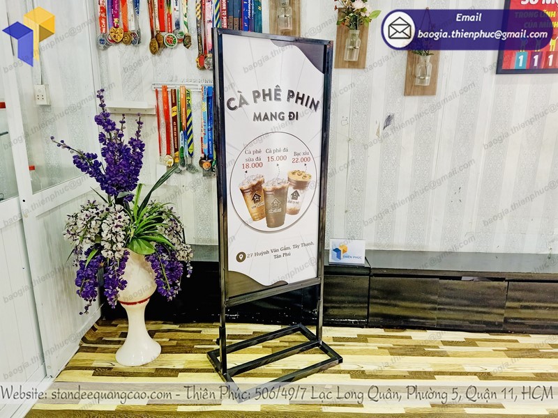- Standee chân sắt có thiết kế nhỏ, gọn.