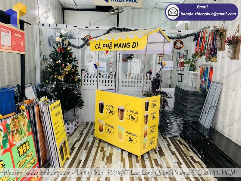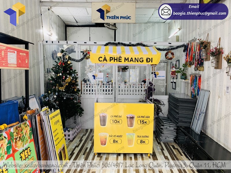 Nếu bạn cần 1 mẫu xe bán cà phê gấp gọn cố định được thiết kế theo yêu cầu thì đừng ngần ngại mà liên hệ ngay với công ty Thiên Phúc chúng tôi + công ty chuyên cung cấp mẫu xe lắp ráp bán cafe giá rẻ nhất thị trường. Bạn chỉ cần chọn mẫu, hay đơn giản gửi ý tưởng thiết kế, đội ngũ nhân viên đầy nhiệt huyết của chúng tôi sẽ biến những ý tưởng ấy thành 1 quầy cà phê đẹp nhất, giá rẻ nhất và giống với ý tưởng thiết kế của bạn nhất!