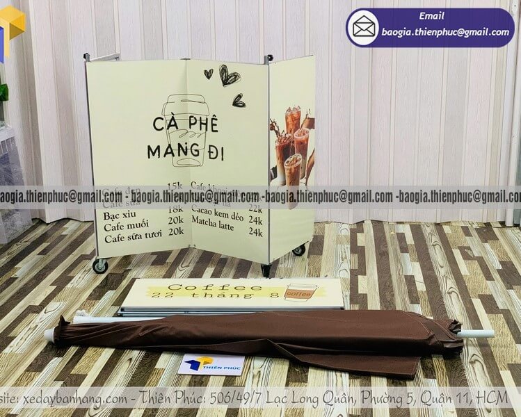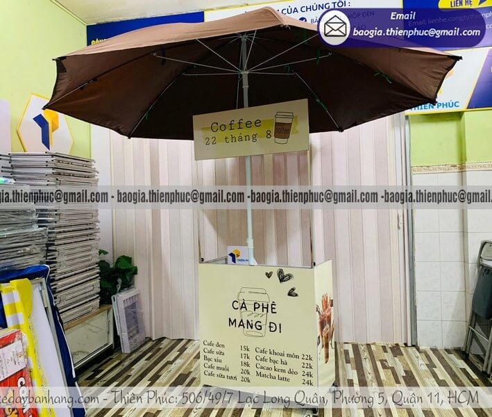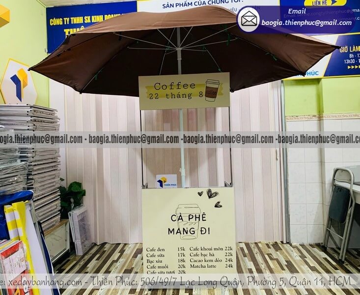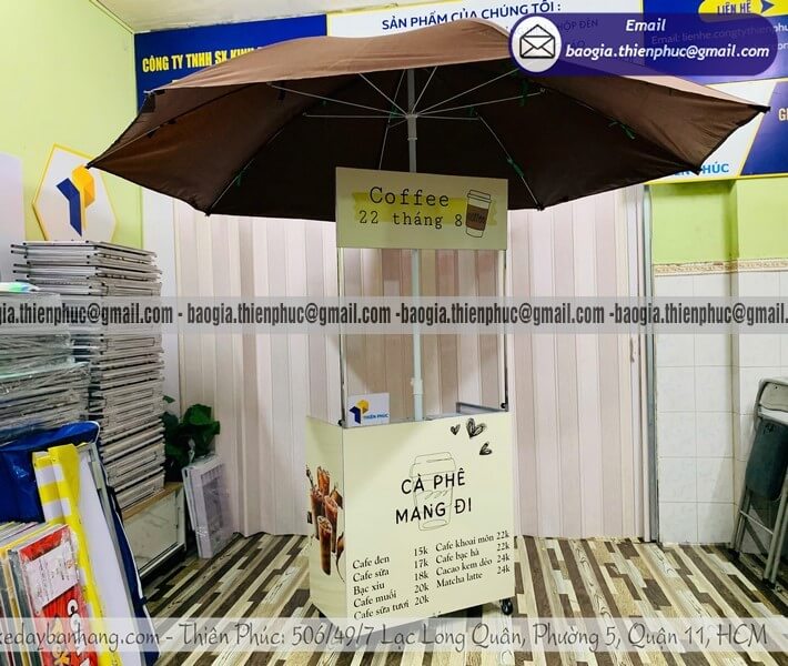 Không cần quán lớn, không cần mặt bằng cố định, nhiều người vẫn đang kinh doanh cafe hiệu quả mỗi ngày nhờ quầy bán cafe di động. Với thiết kế gọn nhẹ, có thể gấp gọn và gắn thêm dù che, đây là giải pháp tối ưu cho những ai muốn bắt đầu nhanh, tiết kiệm chi phí nhưng vẫn đảm bảo tính chuyên nghiệp.