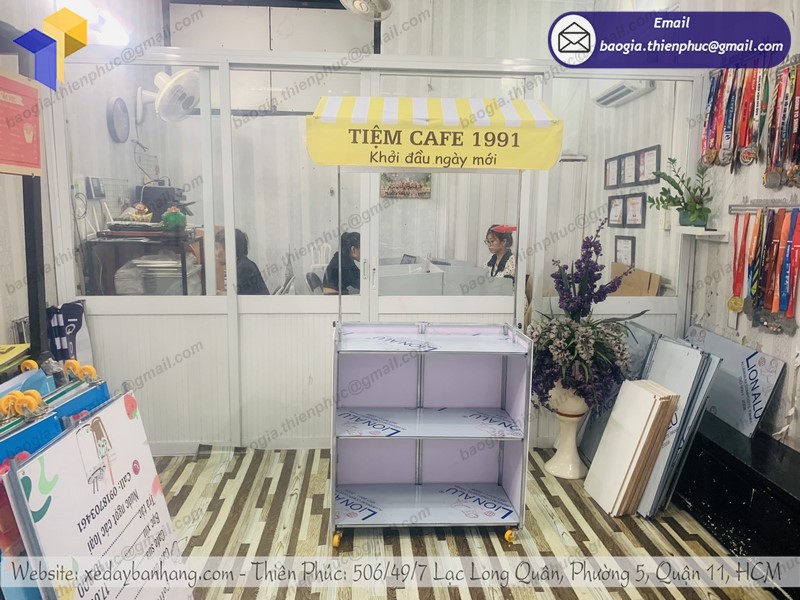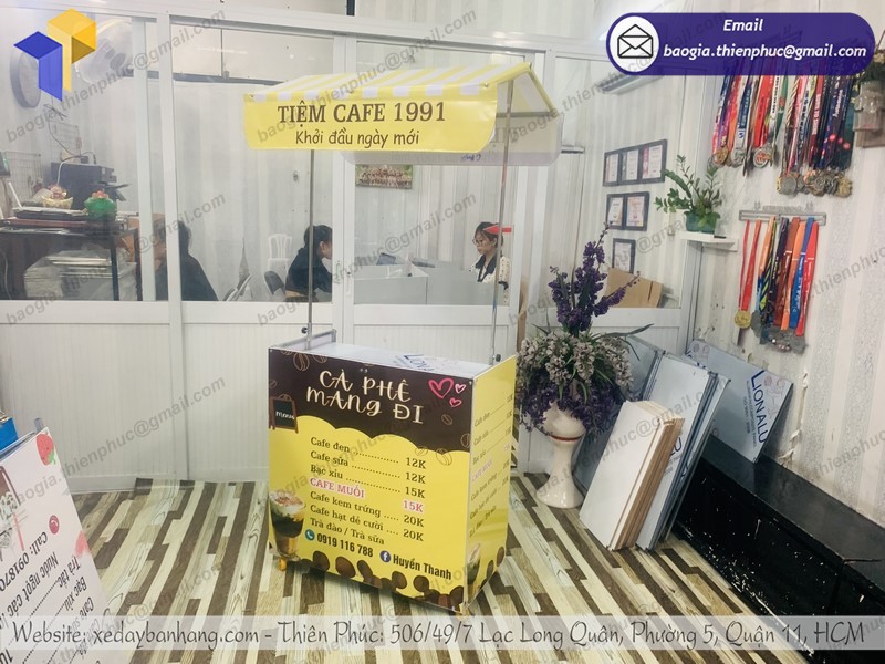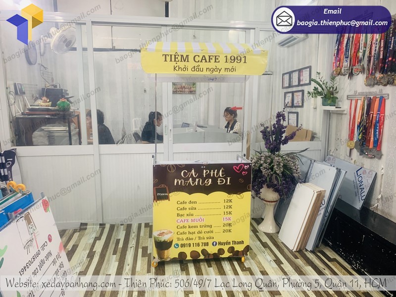 Nhận thiết kế gia công theo yêu cầu: Ngoài những mẫu xe bánh mì thiết kế sẵn, Thiên Phúc còn nhận gia công thiết kế quầy sắt bán cafe theo yêu cầu giúp quý khách có thể tìm và mua bất cứ dòng sản phẩm nào