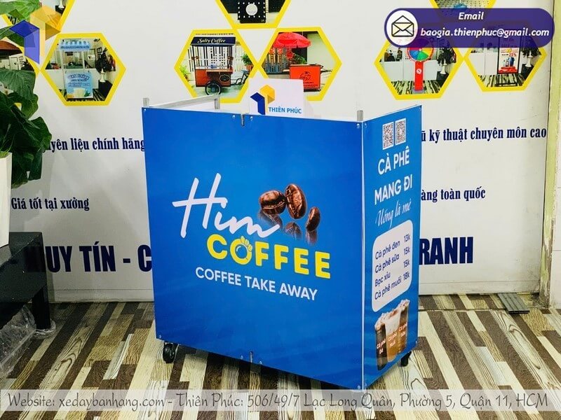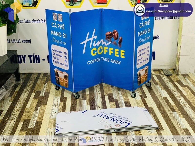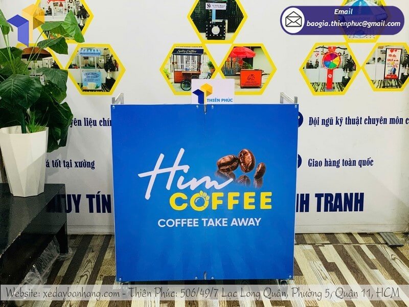 Nơi bán kệ cafe take away di động xếp gọn trên lề đường - Thiên Phúc với trên 10 năm kinh nghiệm trong sản xuất và gia công nhiều kệ bán cafe di động xếp gọn, cam kết giá gốc tận xưởng dao động chỉ từ 700.000đ/kệ trở lên, thiết kế logo miễn phí, theo yêu cầu, sản xuất và giao hàng nhanh trong vòng 1-2 ngày.