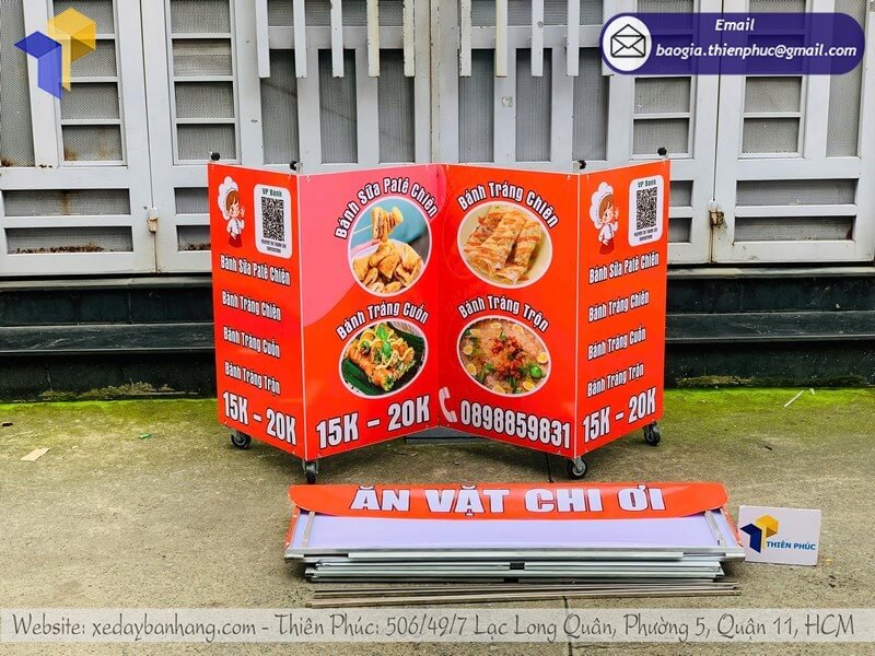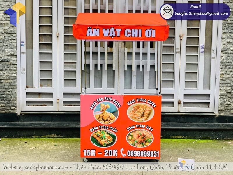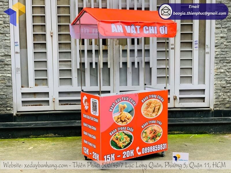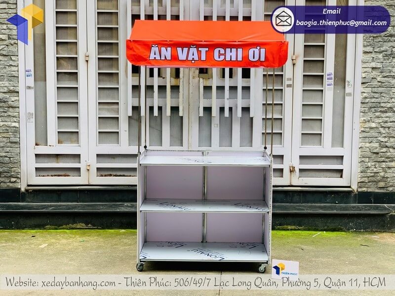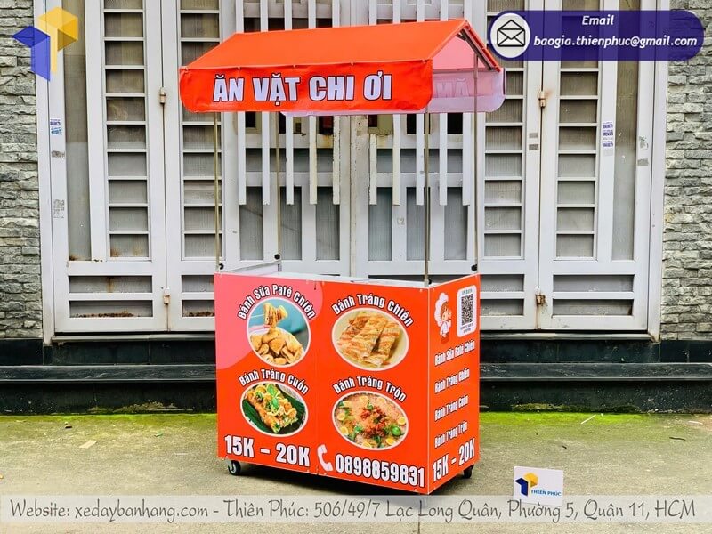 Nơi bán mẫu quầy bán đồ ăn vặt lưu động rẻ - Thiên Phúc là nơi sản xuất nhiều mẫu quầy đồ ăn, nước uống lưu động gấp gọn với giá sỉ, giá rẻ tận xưởng chỉ với 700.000đ/quầy xe, giao hàng toàn quốc