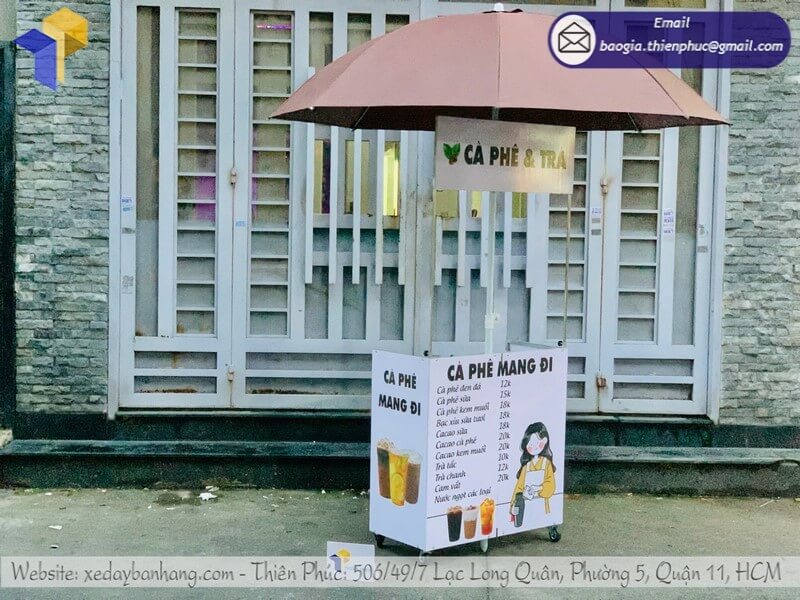 Đừng bỏ lỡ cơ hội mở rộng kinh doanh cafe lưu động với quầy cafe dạo lưu động có dù che ngoài trời chất lượng cao từ xưởng Thiên Phúc. Với mức giá chỉ từ 1.000.000 VNĐ – 2.600.000đ/quầy kèm dù che, bạn đã có thể sở hữu một quầy cafe bền bỉ, thiết kế tinh tế, dễ di chuyển và phù hợp với mọi sự kiện ngoài trời.