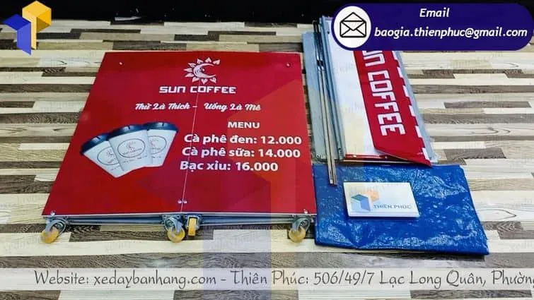 + Ngoài ra, quầy quầy lắp ráp coffee lưu động bằng khung sắt được trang bị thêm túi xách tiện lợi.