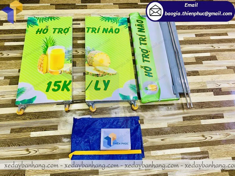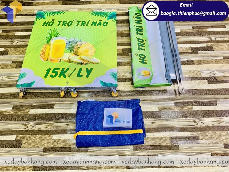 Xưởng Thiên Phúc không chỉ là đơn vị chuyên cung cấp booth-xe lắp ráp mà còn là đơn vị chuyên cung cấp các vật phẩm quảng cáo khác như standee quảng cáo, standee mô hình, vòng xoay trúng thưởng, khay inox, kiot bán hàng, xe bán hàng lưu động, dù cầm tay, dù quảng cáo, thùng phiếu, hộp đèn… với mức giá cạnh tranh hấp dẫn và còn được giảm giá thêm khi bạn mua với số lượng lớn