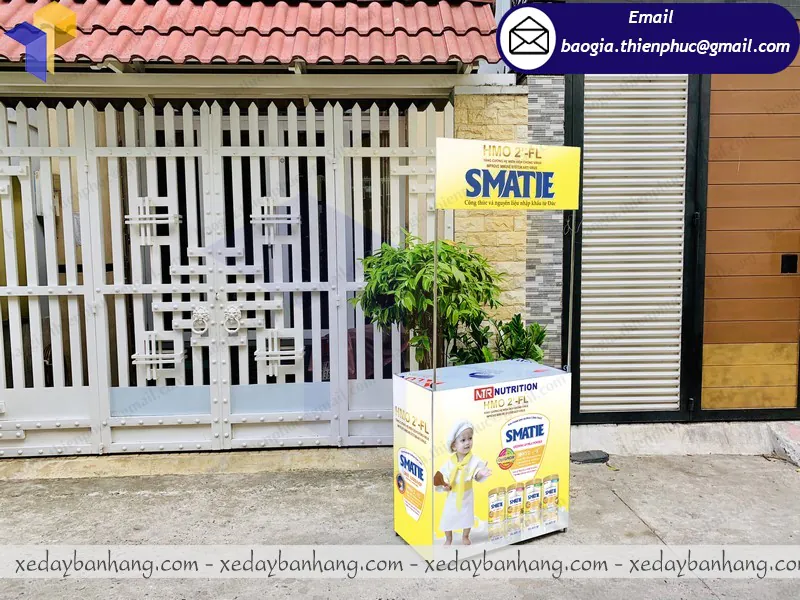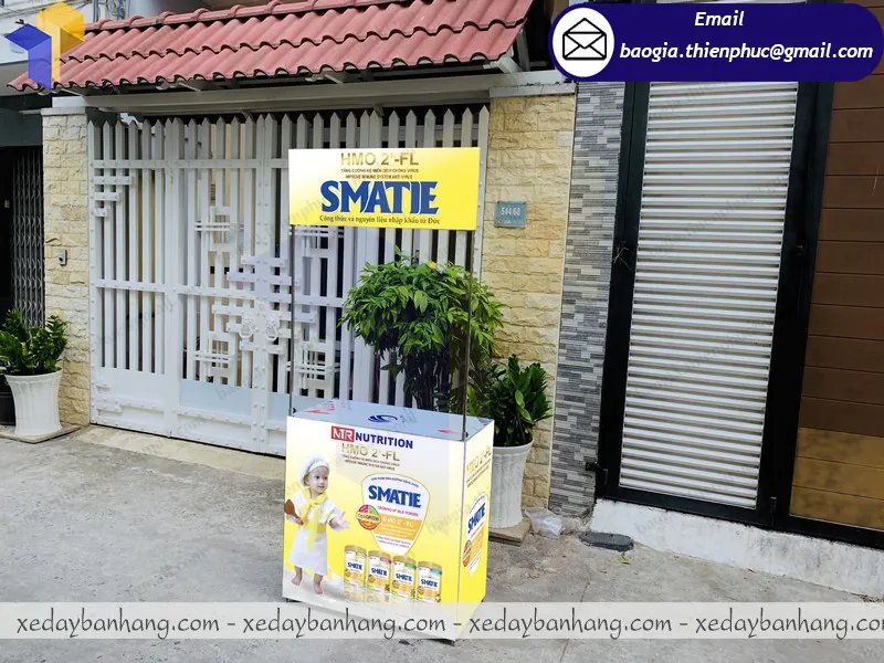Và mình rất tự hào khi giới thiệu 1 xưởng chuyên cung cấp tủ sampling sắt quảng cáo bán hàng rẻ, booth nhựa và xe lắp ráp bán hàng lưu động giá rẻ đó chính là xưởng Thiên Phúc – xưởng chuyên cung cấp các loại vật phẩm quảng cáo rất được nhiều yêu thích hiện nay.